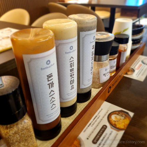 소스, 종이컵, 앞접시 등이 비치되어있어서