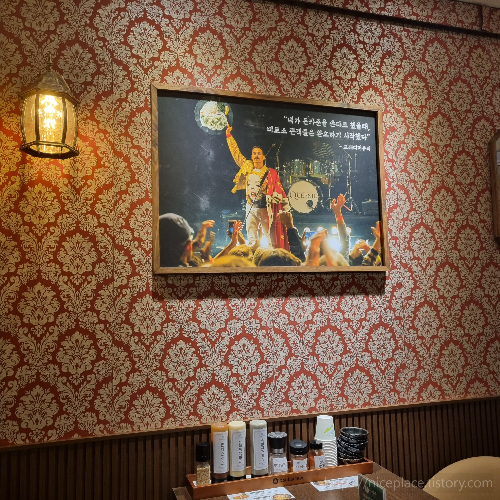 자세히 보니 프레디머큐리가 돈까스를 들고있는 사진이더라구요ㅋㅋㅋㅋ