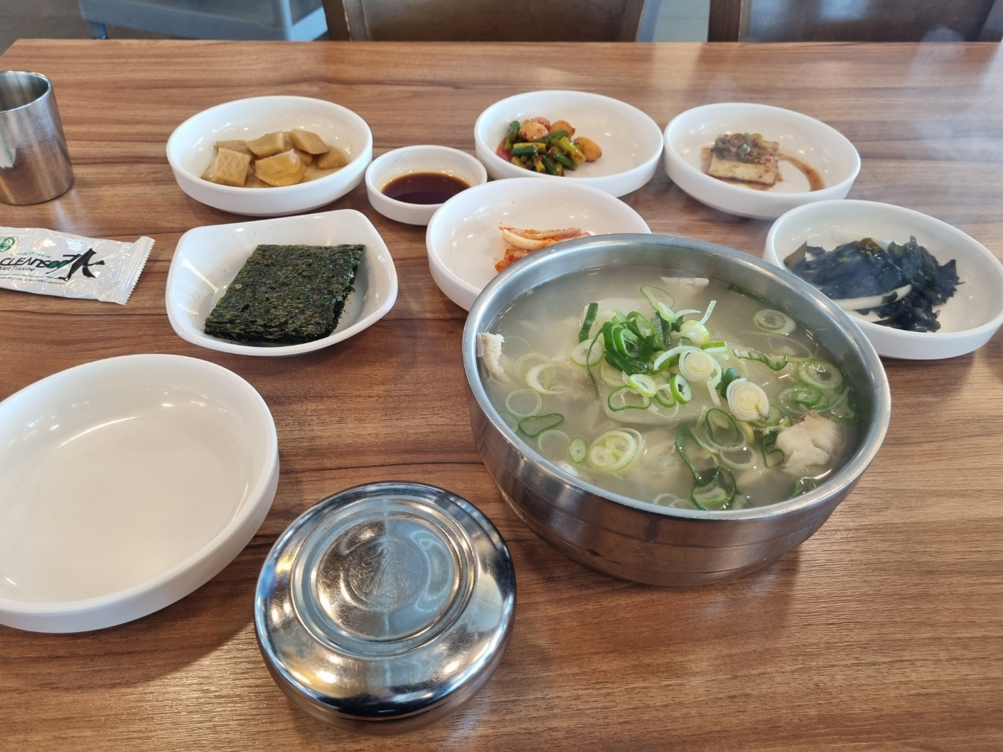 기본적으로 하얀국물과 잘 어우러지는 반찬들과